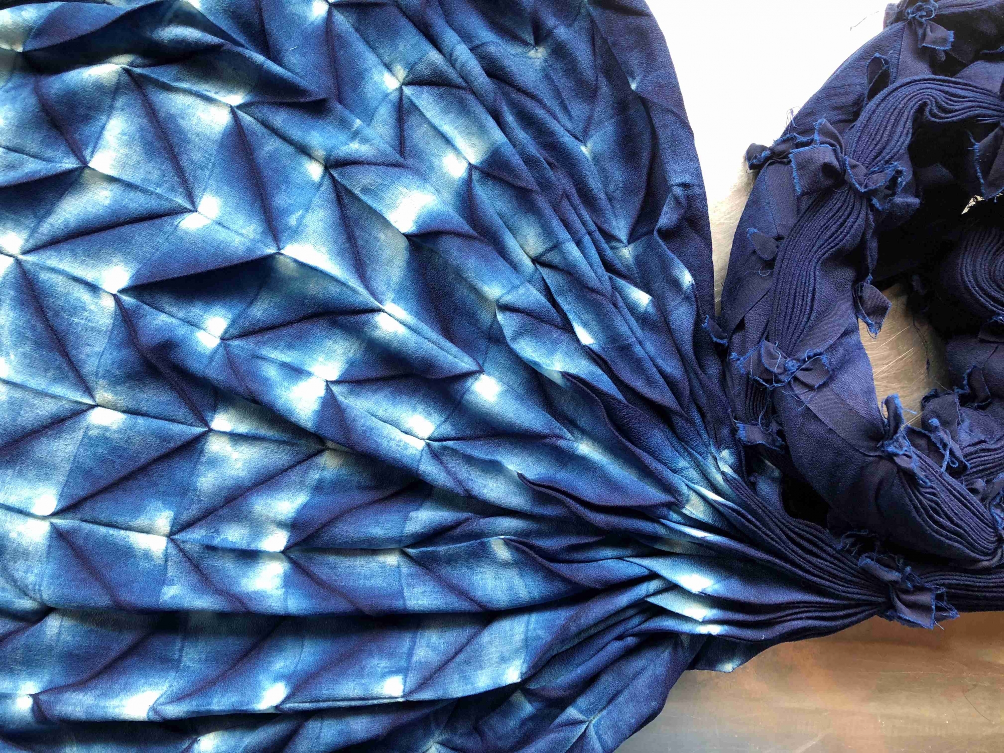 絞りが出来たら天然の藍染で染めていただきます。